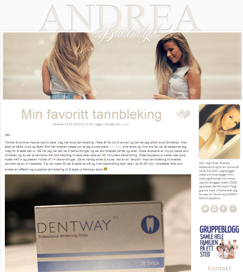 KK hyller Dentway White Strips | Dentway er Best i Test (10/10 poeng) | Andrea Badendyck hyller Dentway |